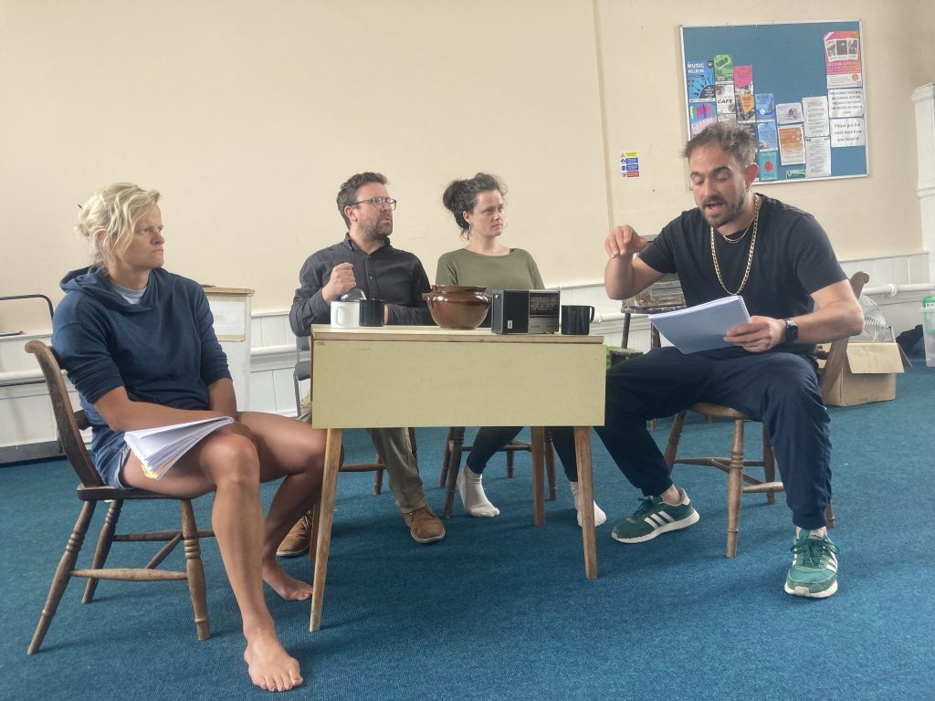 In a project funded by a bursary from The Seagull four actors, (Mark Finbow, Henri Merriam, Ben Elder, Anna Buttery) director Dawn Finnerty, designer Fern Blevins and sound designer Mark Fawcett began to explore the characters, dynamics and the technical challenges of a story set in a house which is falling into the North Sea.